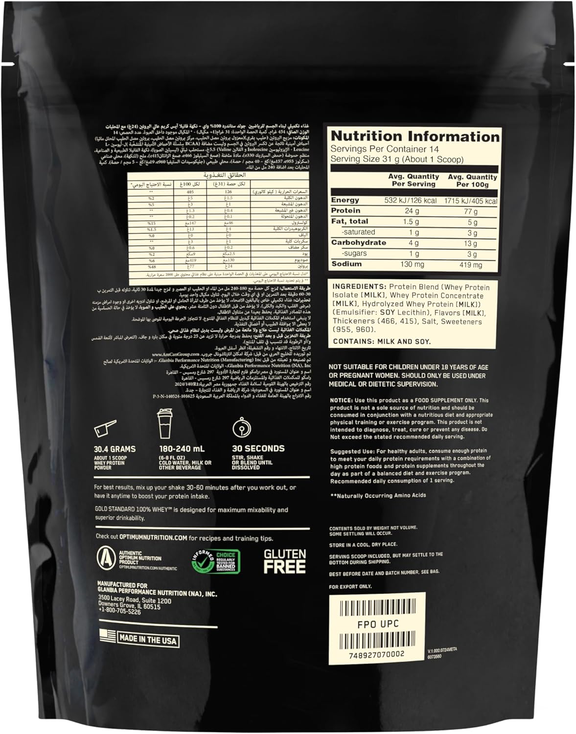 وی پروتئین Gold Standard از برند Optimum Nutrition پرفروشترین و معتبرترین پروتئین وی در دنیاست. این مکمل با جذب سریع و ترکیب پروتئین وی ایزوله، کنسانتره و هیدرولیزه، انتخاب اول ورزشکاران حرفهای برای عضله سازی بدون چربی است. ویژگیها:24 گرم پروتئین خالص در هر سروینگ جذب سریع برای مصرف بعد تمرین دارای BCAA و آمینواسیدهای ضروری چربی و شکر بسیار پایین مناسب عضله سازی و ریکاوری تمامی وی پروتئینهای عرضه شده در رومازون اصل و وارداتی هستند.برای دریافت قیمت روز محصول و ثبت سفارش مطمئن، اینجا در رومازون به راحتی میتونی از طریق واتساپ اقدام کنی و مشاوره تخصصی هم بگیری.